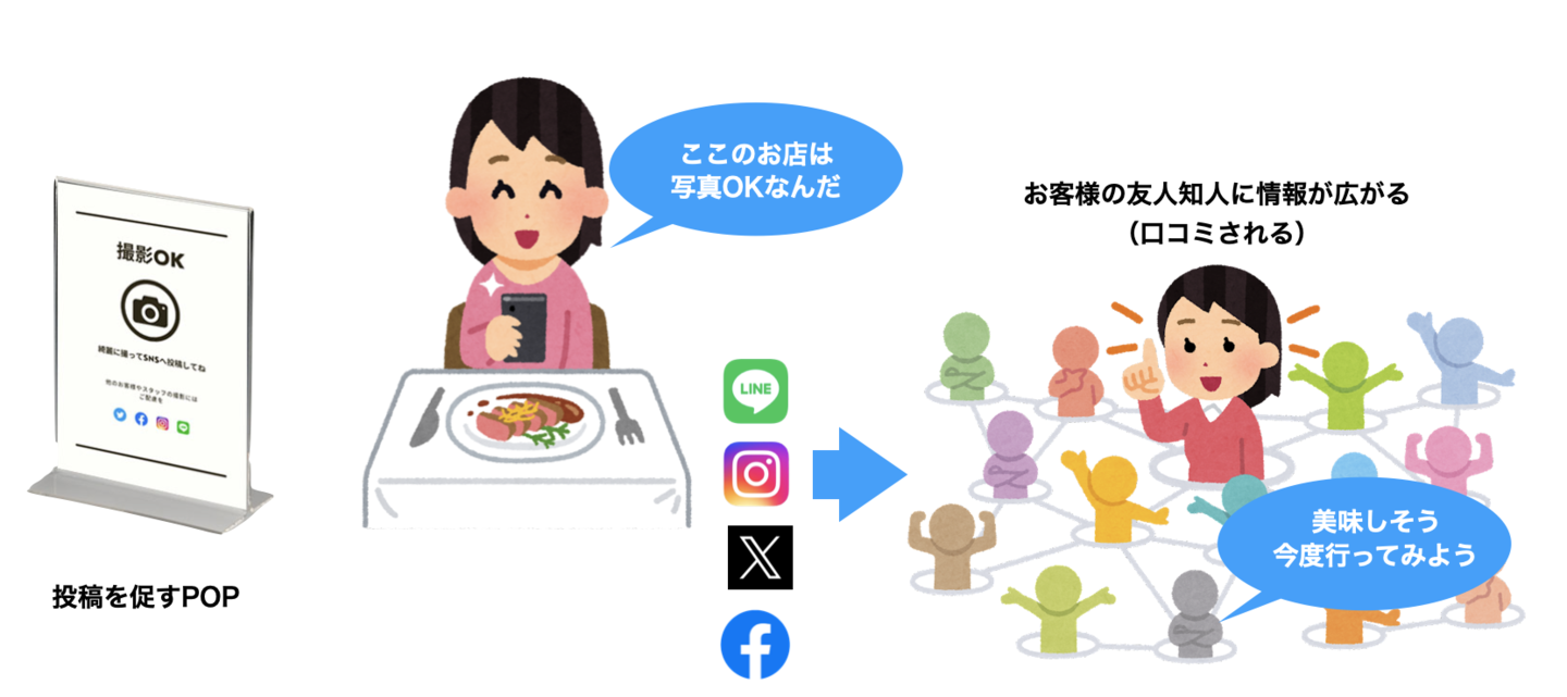 食事したその瞬間にお客様のお友達へ伝えることができるのです